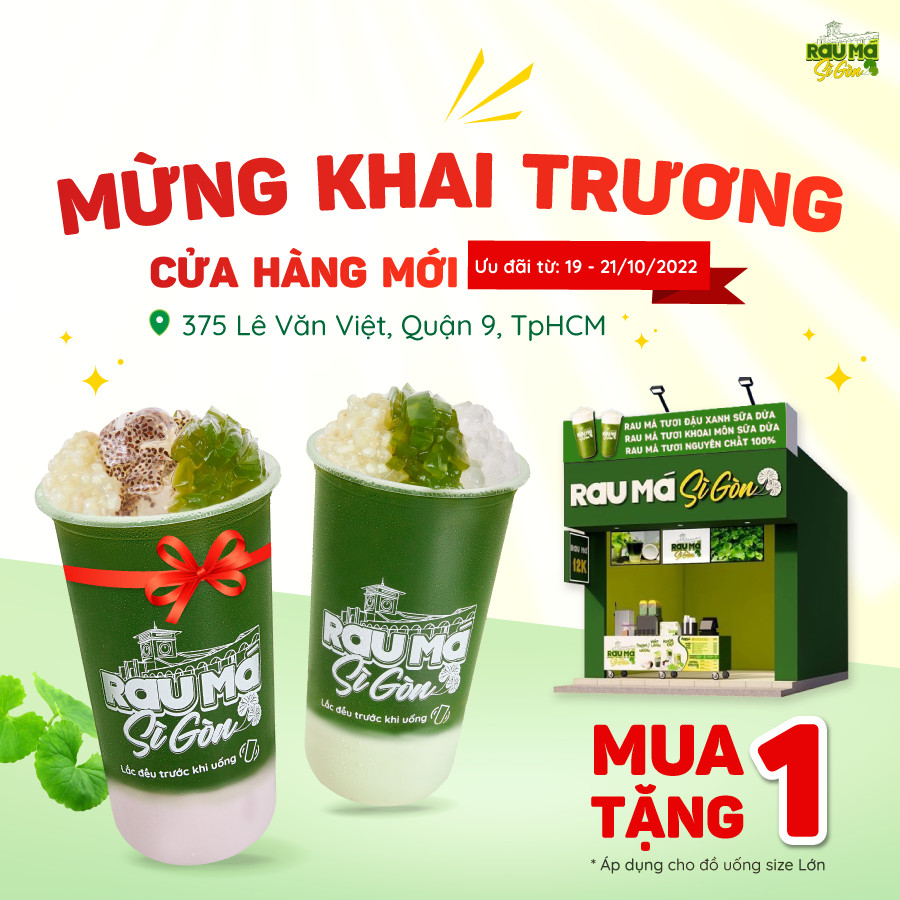 Chào đón cửa hàng Rau Má Sì Gòn mới tại 375 Lê Văn Việt Quận 9 bằng một sự kiện khai trương siêu hoành tráng với ƯU ĐÃI hấp dẫn: