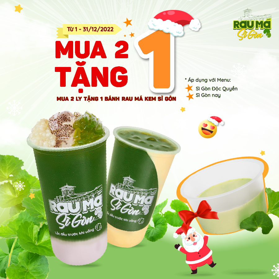 Càng vui hơn khi Rau Má Sì Gòn tung 𝗱𝗲𝗮𝗹 𝘀𝗮̂𝘂 đ𝗮̣̂𝗺 #MUA_2_TẶNG_1, tặng ngay 1 chiếc 𝐛𝐚́𝐧𝐡 𝐫𝐚𝐮 𝐦𝐚́ 𝐤𝐞𝐦 𝐒𝐢̀ 𝐆𝐨̀𝐧 thơm ngon núng nính khi mua 2 ly rau má bất kỳ!